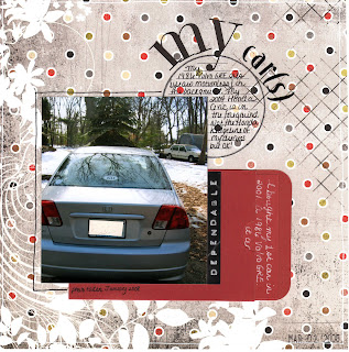 This page is titled "My Car(s). I have only ever had two cars and this was about them. I have always loved cars. Grew up around them. I was so sad when I had to give up my first car and really, to be honest, never really have let go of it.(It's the white volvo in the background!) That Volvo is really the only thing I truly own. But I do love my Honda and one more year of payments and it will finally be all mine!